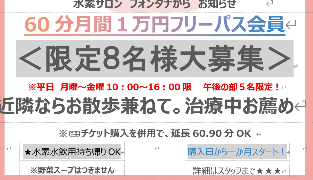 ★平日限定の月間フリーパス水素ガス60分の会員を8名様だけ大募集します。平日の... -